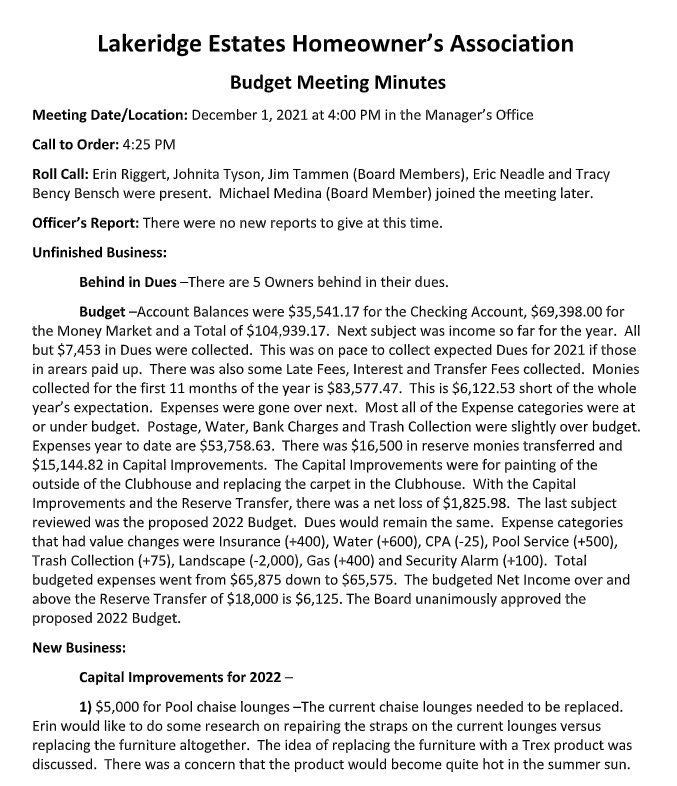 Budget Meeting Minutes: